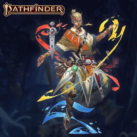 Gazing past his easel at the bustling Commerce District of Niswan, Thaleon’s thoughts wandered once again. They rarely stayed put, but life would hardly be any fun if they did. There were so many delicious new sensations to take in, from the kites dancing overhead to the tempting sizzle of vegetable wraps from a nearby food stall. He observed the colors of the market, his eye lingering on a small shrine where a priest was drawing the rose of Shelyn in colored powders. The Rahadoumi elf didn’t worship to any gods himself, of course, but he had nothing but respect for the old priest’s lifelong devotion and mastery as his fingers effortlessly scattered a vibrant green around the rose’s exterior. Thaleon turned back to his own easel to paint with his mind’s eye, the emotions of the market his palette. He blended the vibrant gold of a cunning merchant’s intellect with the frustrated red of the customer she had just outwitted in a battle of bargains. Now for some green as well, the color of growth, flexibility, potential...