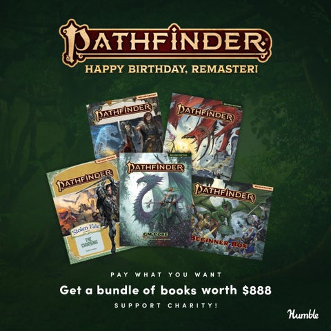 t’s hard to believe it’s already been a year since the release of the Pathfinder Second Edition Remaster, but here we are! To celebrate the occasion, we’re excited to offer the Pathfinder Second Edition “Happy Birthday, Remaster!” Bundle with our friends at Humble Bundle. As with all Humble Bundles, your purchase will help support a worthy cause, in this case our perennial favorite, Comic Books for Kids.