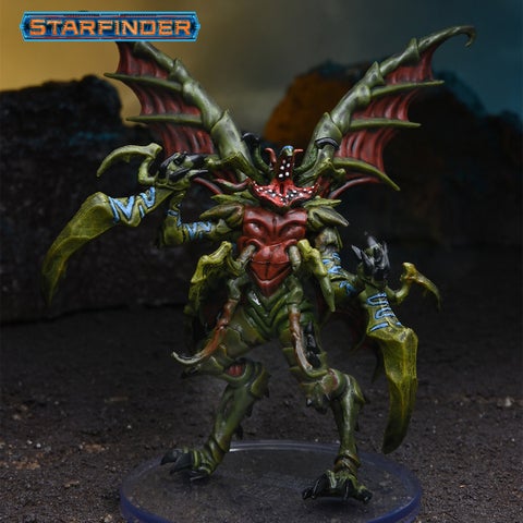 For the past few weeks, we’ve been looking at the myriad aliens and starships that make up the Starfinder Battles: Planets of Peril set of prepainted plastic miniatures from WizKids, coming out next month. Now, alas, our journey through the galaxy has come to an end, and we’re putting the landing gear down on our preview cruiser. But before we touch down planetside, let’s get one last look at the creatures in the set that hail from the Starfinder setting’s home system, the Pact Worlds.