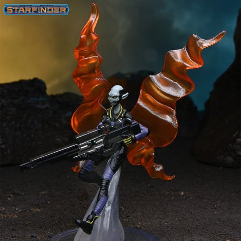 Coming soon to a Drift beacon near you, Starfinder Battles: Planets of Peril is the first full set of Starfinder miniatures from our partners at WizKids. The set offers 32 randomized figures in 3-figure boosters and includes not only a wide array of aliens (appropriate for both PCs from distant worlds to monsters threatening safe space), but also the first starships in the Starfinder Battles line. Each starship comes on a hexagonal base with a sturdy clear support column, making it a perfect fit for any starship battle using the Starfinder RPG.