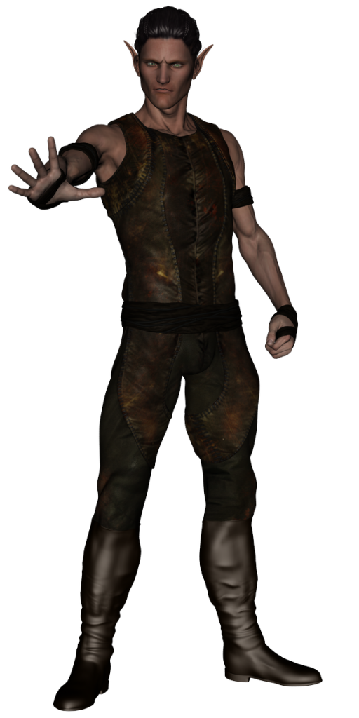 Ardainn would probably be a handsome elf if he would stop scowling so much. Unfortunately, since his new bride was taken by bandits in the very lands he's been sent to explore, his scowl has taken up permanent residence on his features. He is tall, lithe, and moves with the grace of a prowling cat, and his dark hair is worn in a warrior's braid that reaches to his waist. He wears simple, well-worn leathers and a long waterproof cloak.