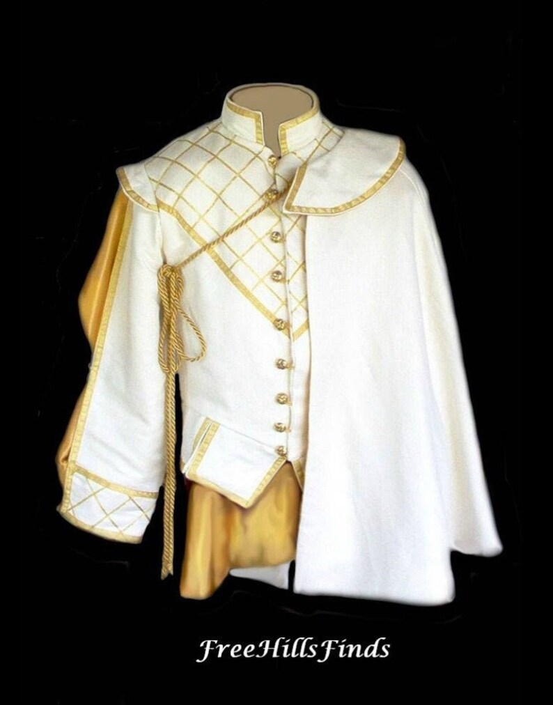Frank After getting rid of the armor and cloths Frank arrived with to this world he opts to have a couple of versions of this embroidered tunic he wears in the pic. As others seem to be going with black he would wear the black version with gold embroidery. He would add a white Shoulder Cape about twice the length of this one and with gold embroidery along the cloak edge as well. White pants and black and gold dress greaves to match his tunic.