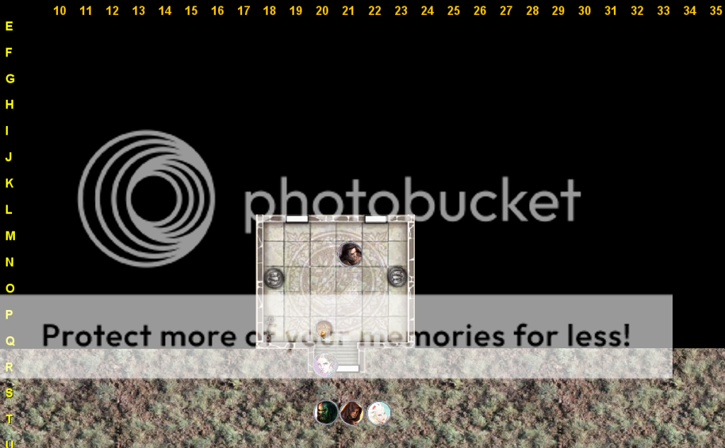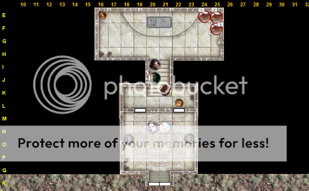 "Are we expecting resistance?" Quiddling whispers to Theodric as he tiptoes behind Stannislav. Move Quiddling to O22 (right beside the statue that is going to cut his head off once we open the door... :)