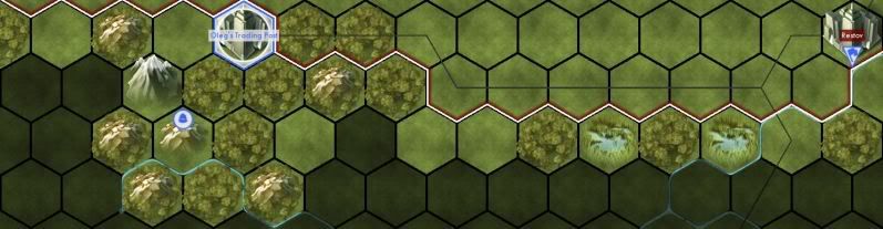 Did you remember to deduct from your trail rations for the 24th? You have crossed into the next hex, marked by the little helm.