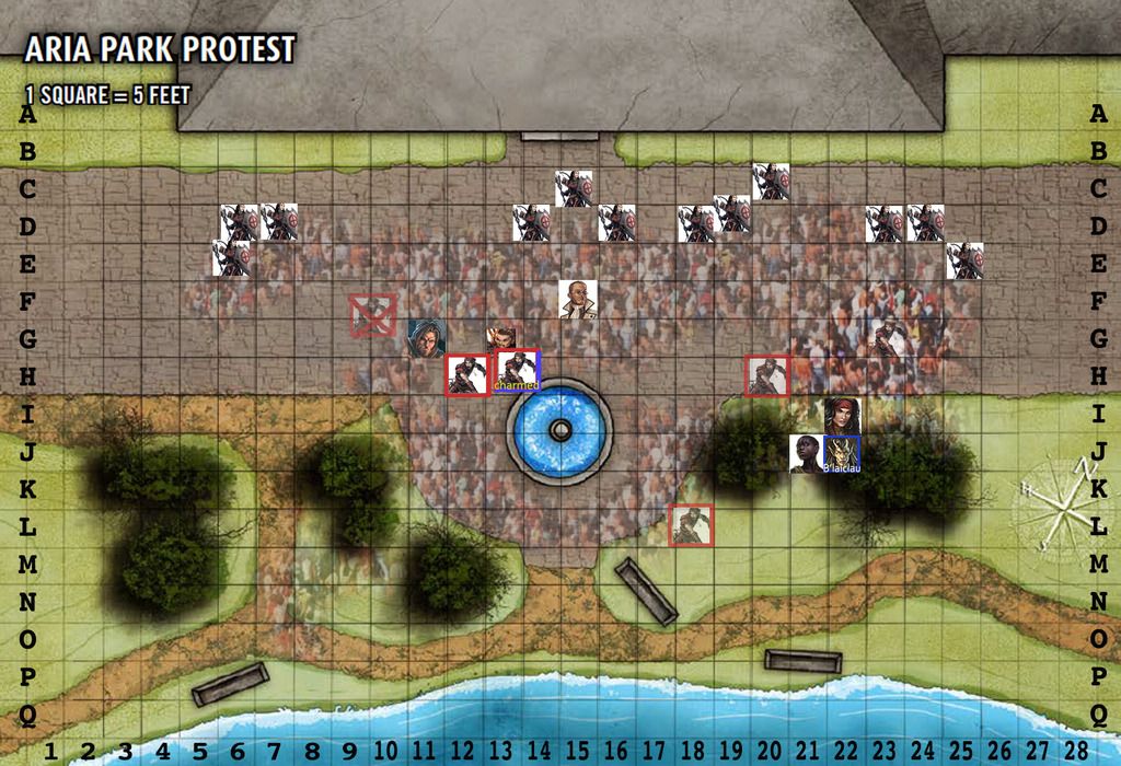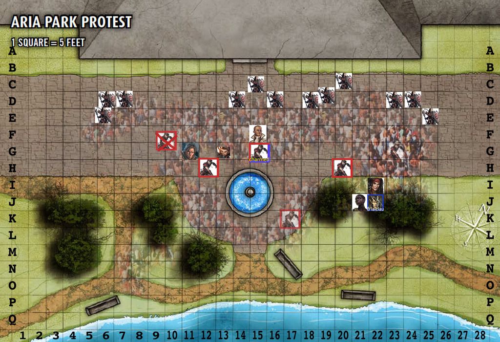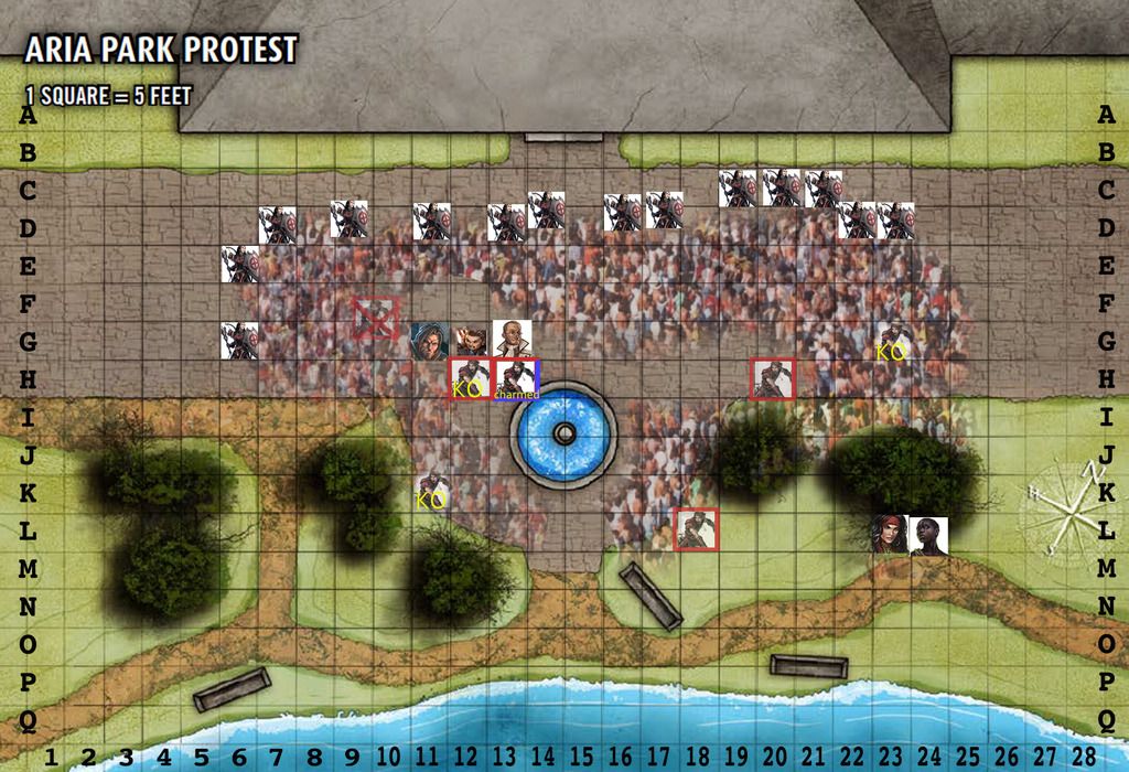 More and more are getting involved in the push toward the opera house. A large group surges.. leaving a couple bloodied Chelish thugs in their wake. The Dottari guard shifts east to address the swell in resistance. The armored soldiers look unaffected by the rioters' assaults.. the only danger to them is sheer numbers, and the little restraint they do show.