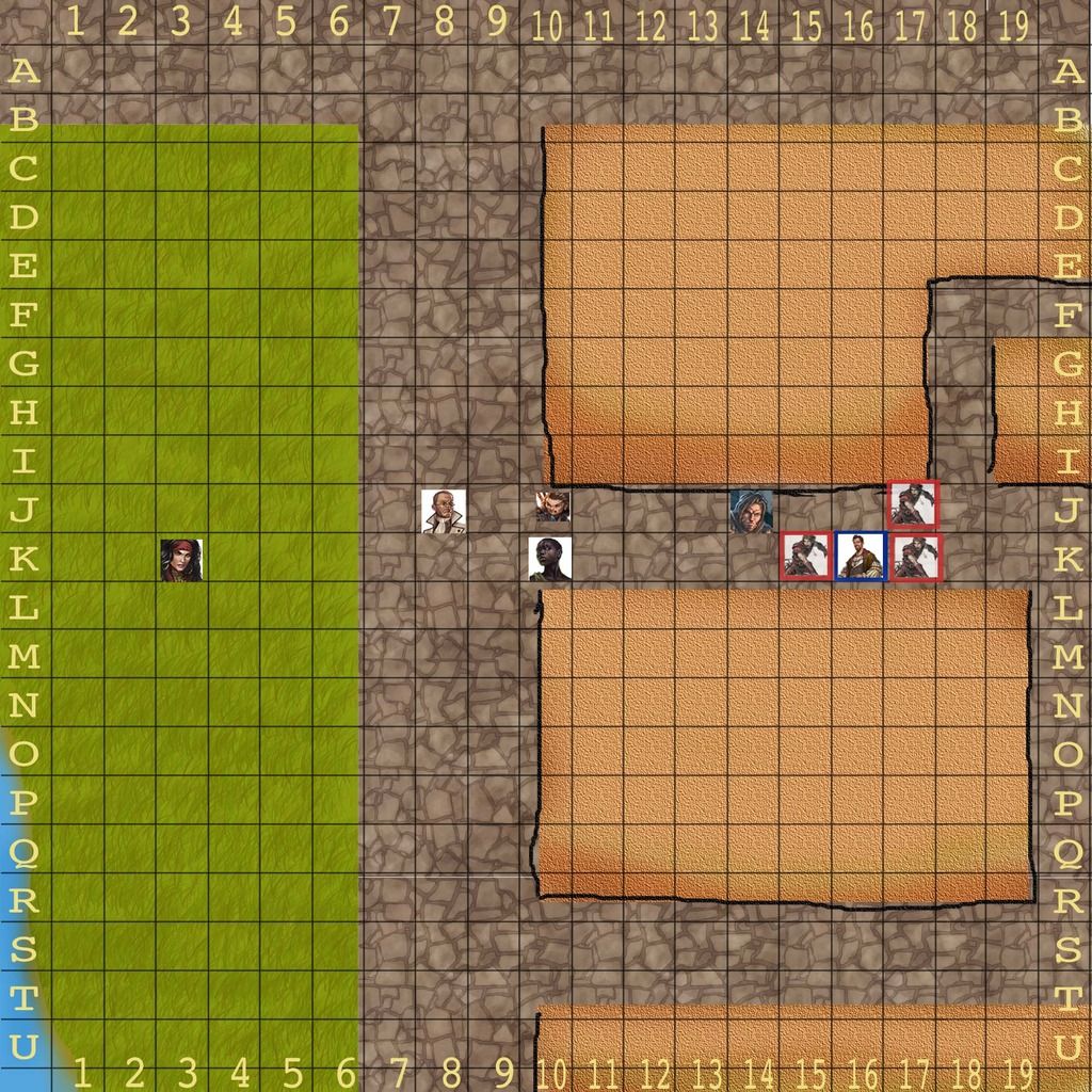 Asha huffs in frustration as the bullies ignore her suggestion. I just need to try harder. This time, she takes a few steps forward and directs her efforts at the one attacking the gnome. "Leave him alone!" Move to K14, cast Forbid Action again at J17. DC 15 Will save or he is unable to attack for one round.