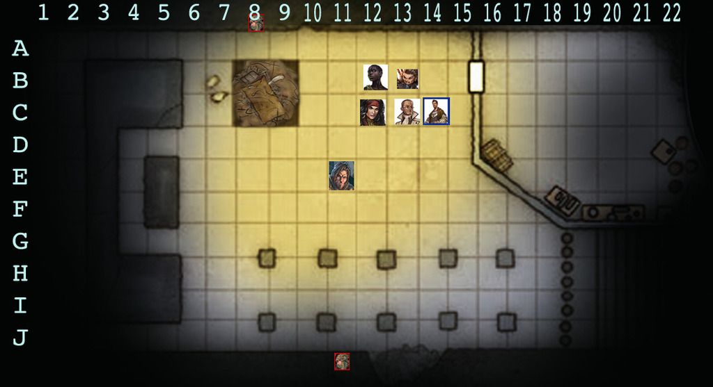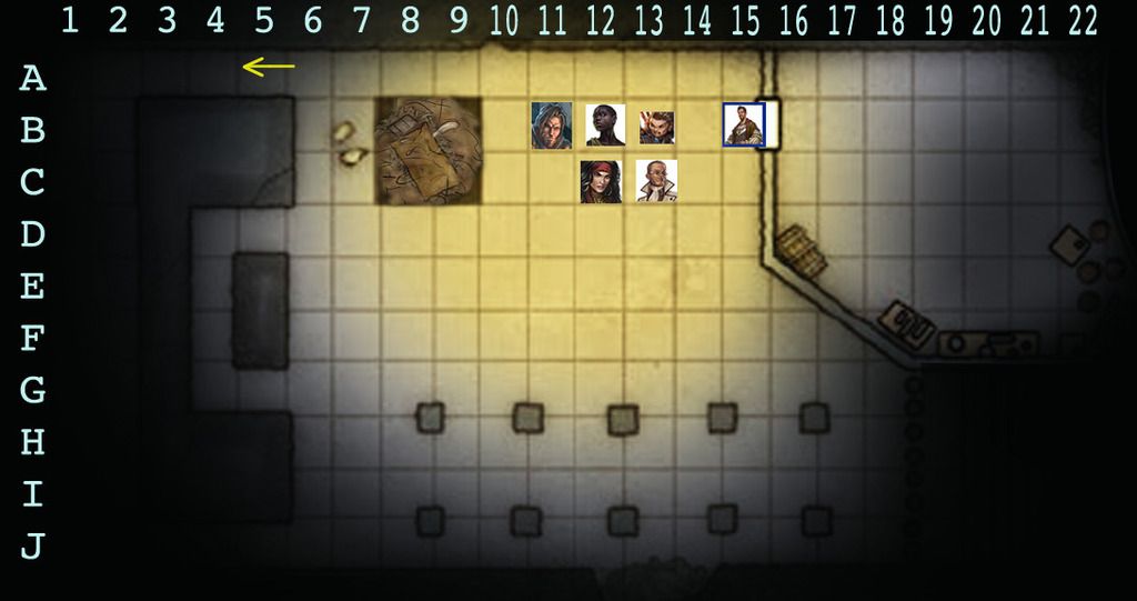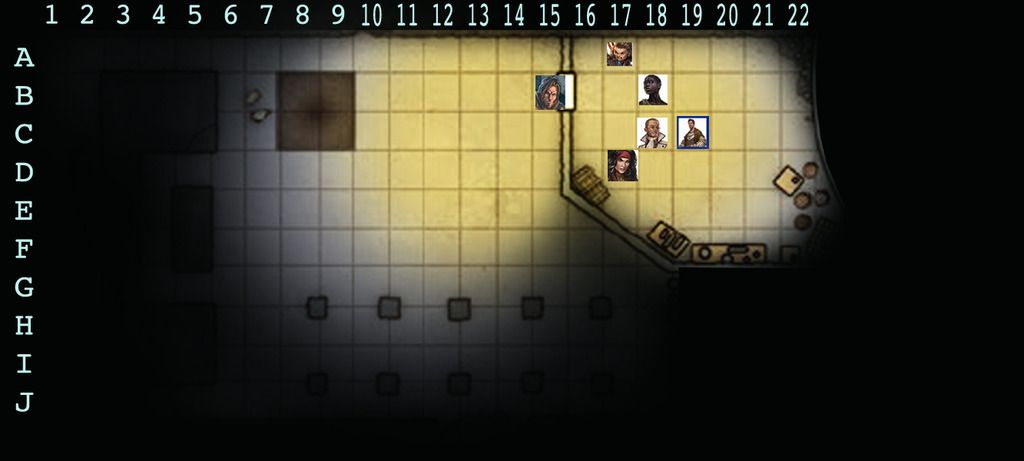 Grease covering (B-C,1-2)... foes are at (F,1) and (F,2) I have you at (A,2) 30' of movement used so far.