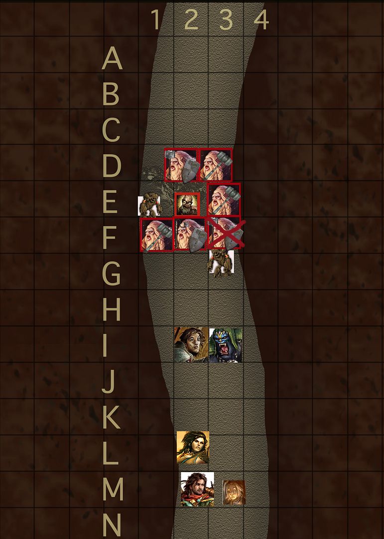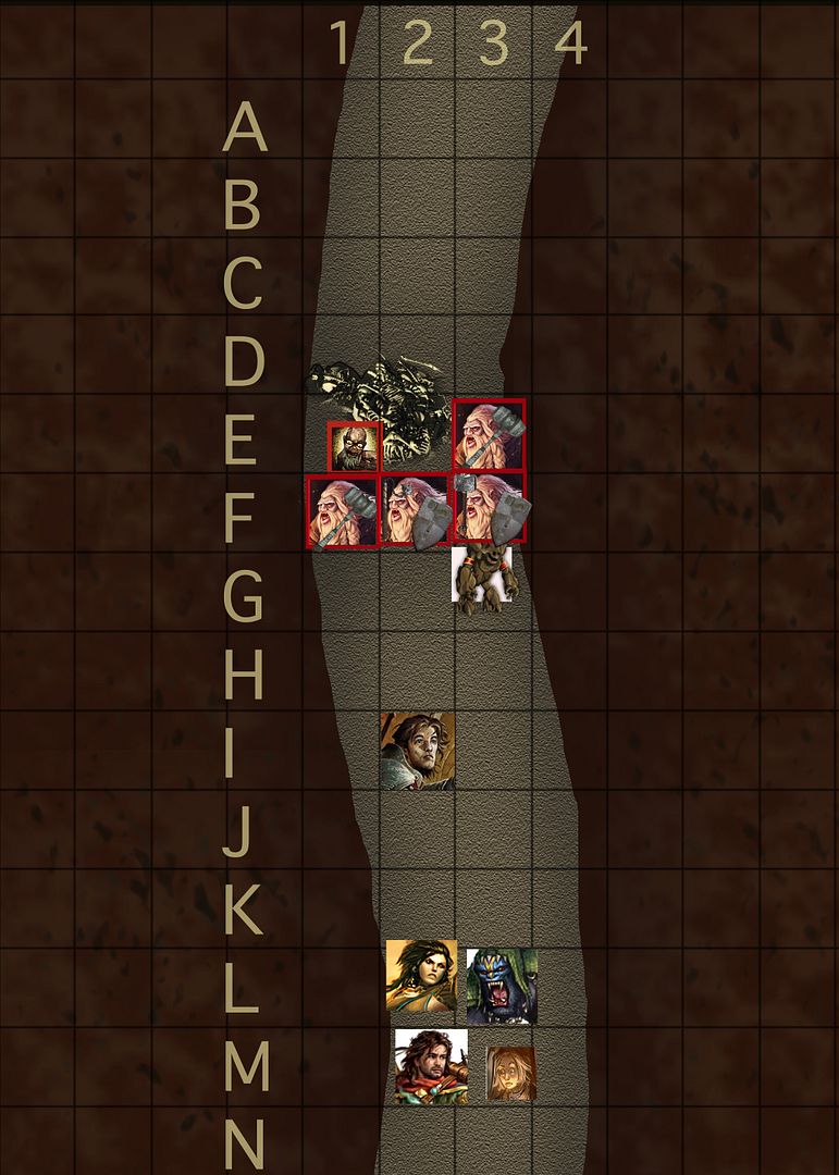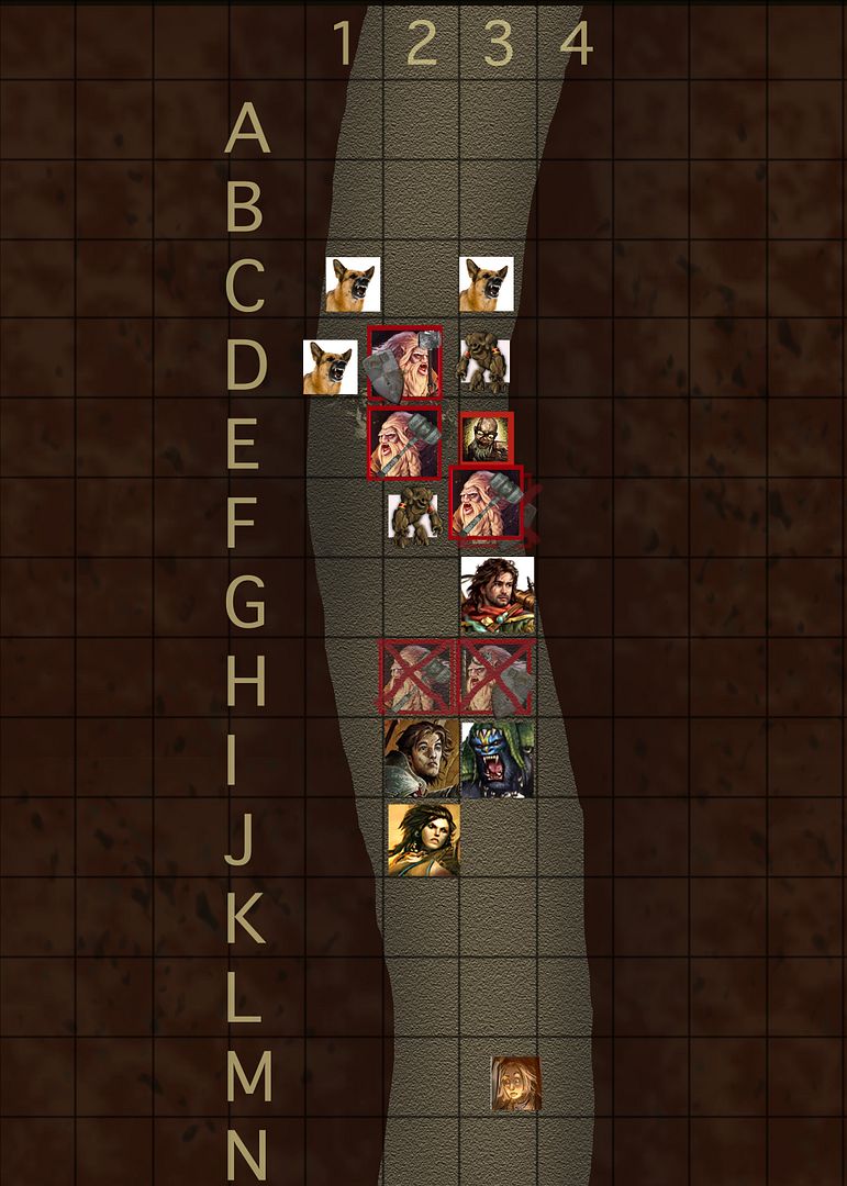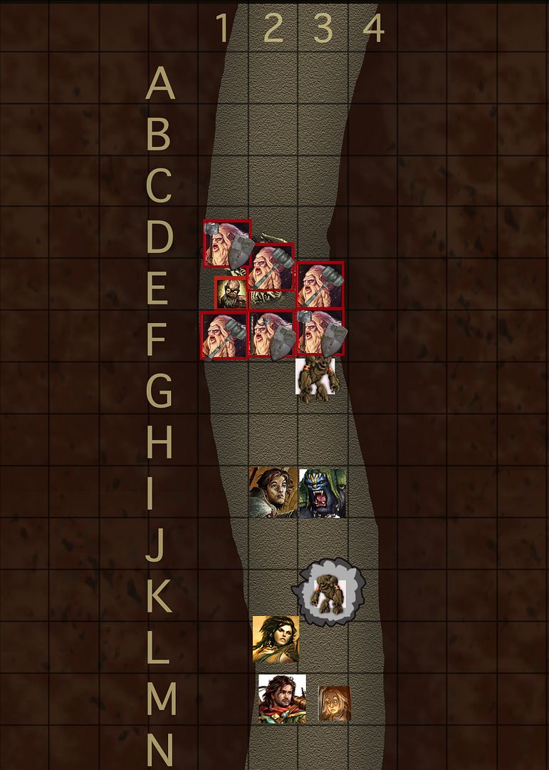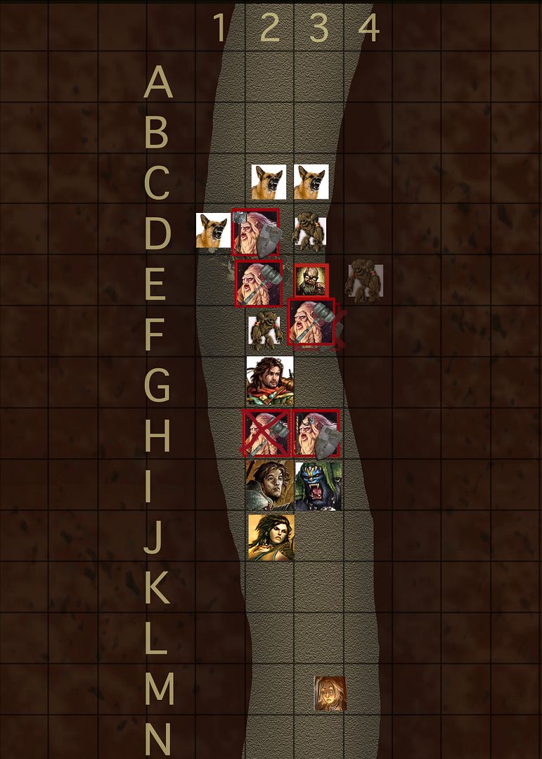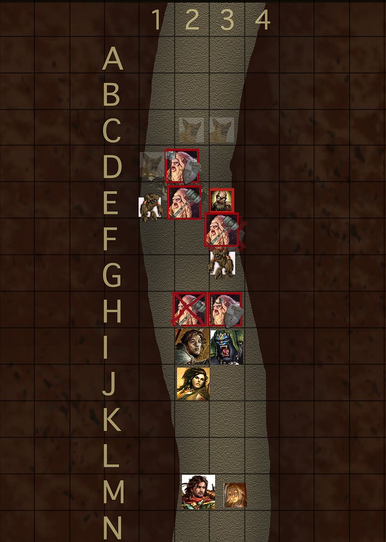Norton steps between the two undead dwarves and attacks the one between him and Green taking advantage of the friend position.