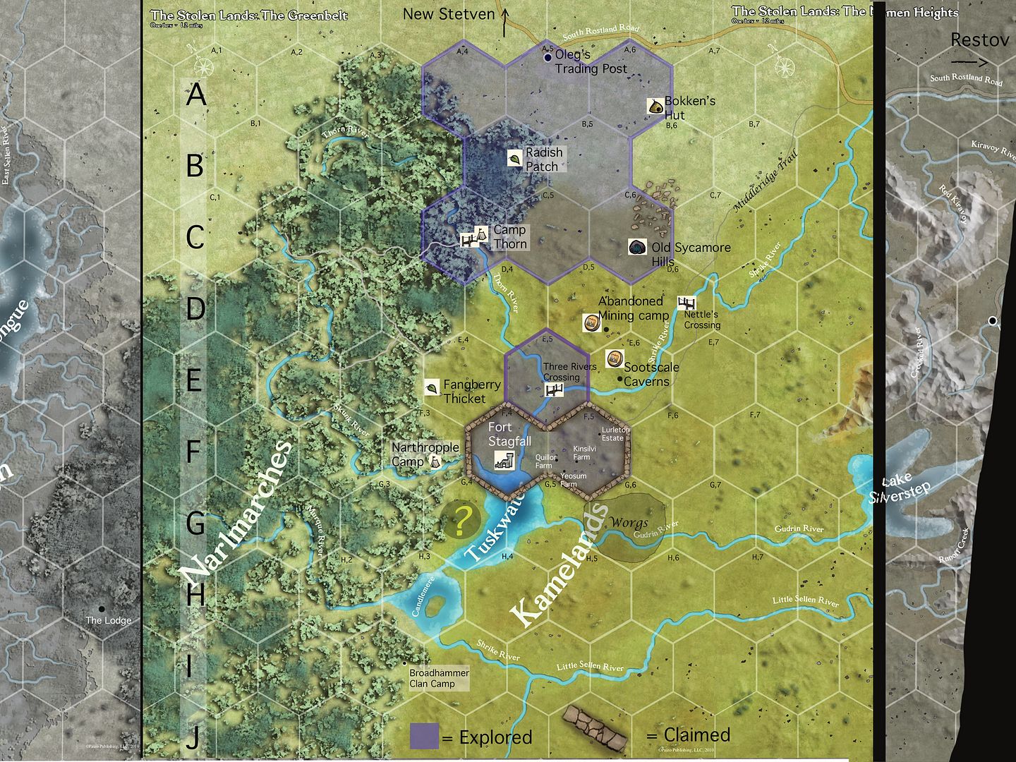 At dinner he tells the others. "I am not sure who, or what, this Dark Lady is, probably some kind of spirit of these lands. Clues head towars something in the woods north west from here, now that we know the land around here should we investigate those parts?"