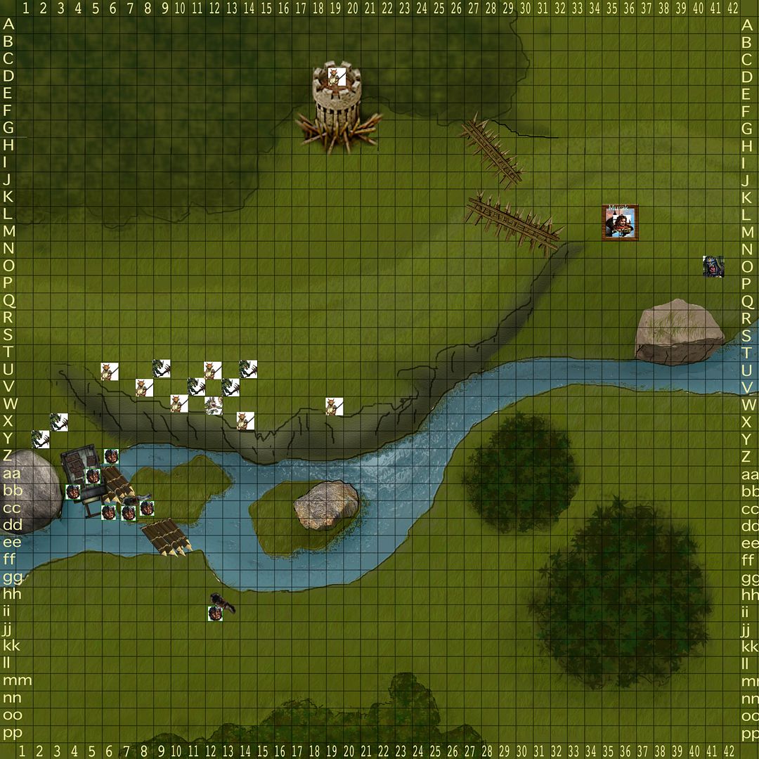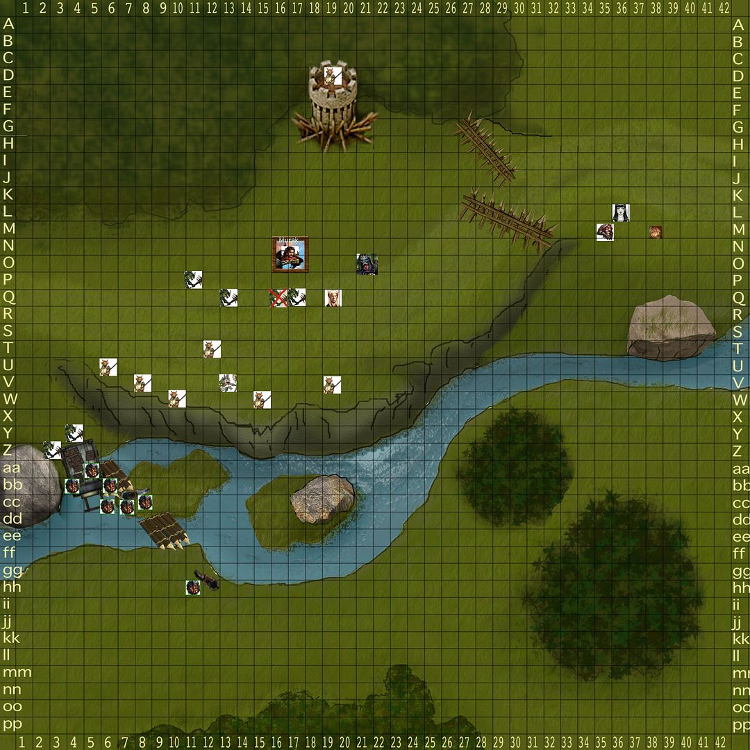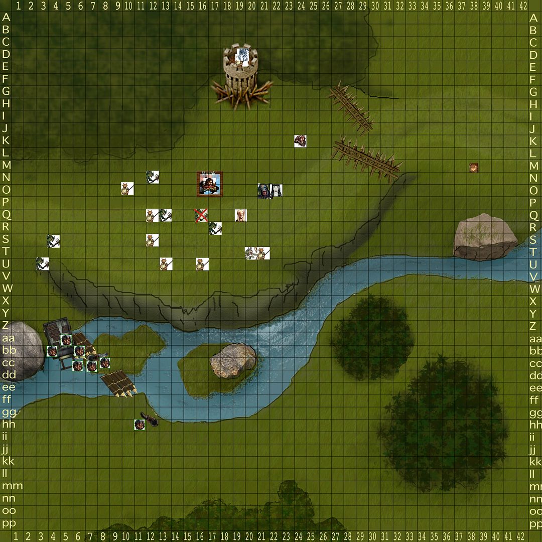 Following Green, Sonechka rides toward the barricade. She eyes the knot of lizardmen on the riverbank, patiently biding her time until she is in range of her spells.