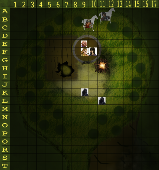 Move to (K-L,12-13), Ready to strike should the presumed bandit try to move away.