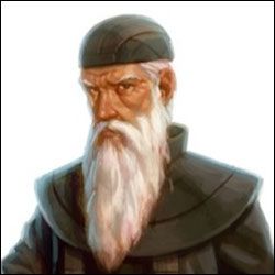 After a few moments the rest of the Society arrives, a tall athletic woman with a bald head, wearing deep blue scarves and robes is joined by a tall bearded fellow wearing a scholar's outfit and pince-nez glasses balanced on the end of his nose. With long flowing white hair and a braided beard, this man has the air of someone in authority and power seems to exude from his presence. Think Gandalf from LotR in appearance, if not presence