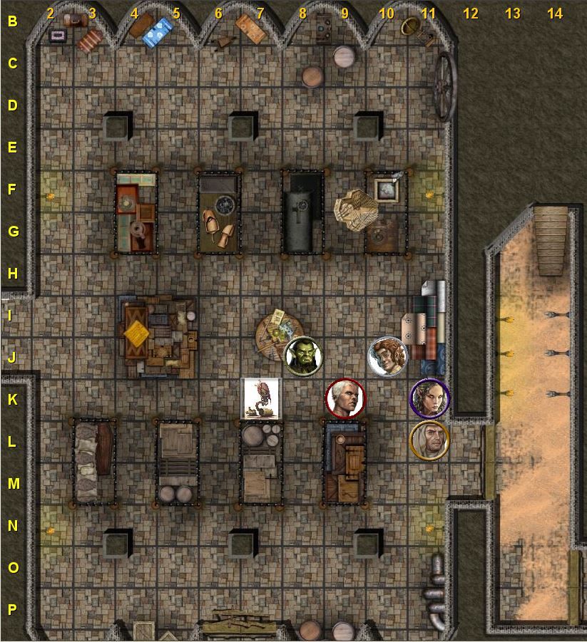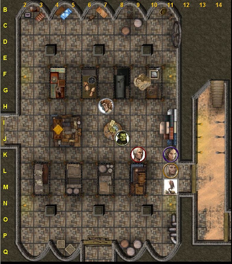 At the same time Dumah charges to Rakara's aid, releasing his huge hammer from its sling over his shoulder, ready to smash the thing into a pulp. Attack would have been a miss even if you had been in range.