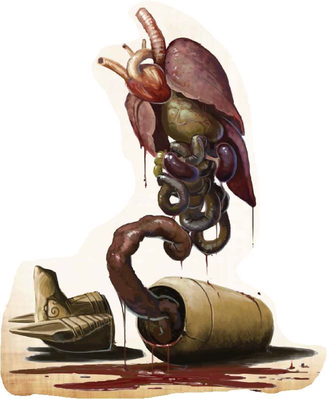 ...catching him lightly on the side of the head but splashing him with rotting organ fluid. (fort save DC 17 or be nauseated)