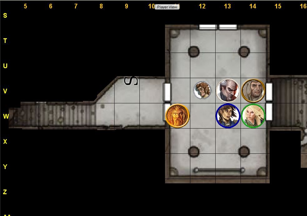 With a check over his shoulder to see that everyone was ready, the Pahmet pushed the door open to reveal a short hallway that narrows sharply to the west, before becoming a descending to set of stairs that abruptly ends at a rough rock wall. More burrowing tunnels can be seen at the bottom of the stairs.