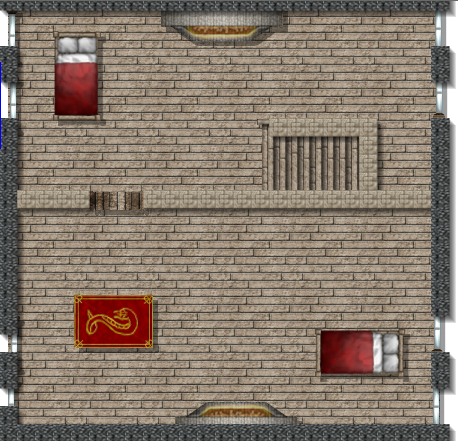 second floor Master Bedroom: This large room has been thoroughly ransacked and Master’s Study: The exotic zebraskin rug on the floor here is worth 35 gp. The bed and chair are torn apart, and the desk and footlocker have been looted.The fire mantel is decorated with roaring lions heads in bronze which match the other key in your possession.