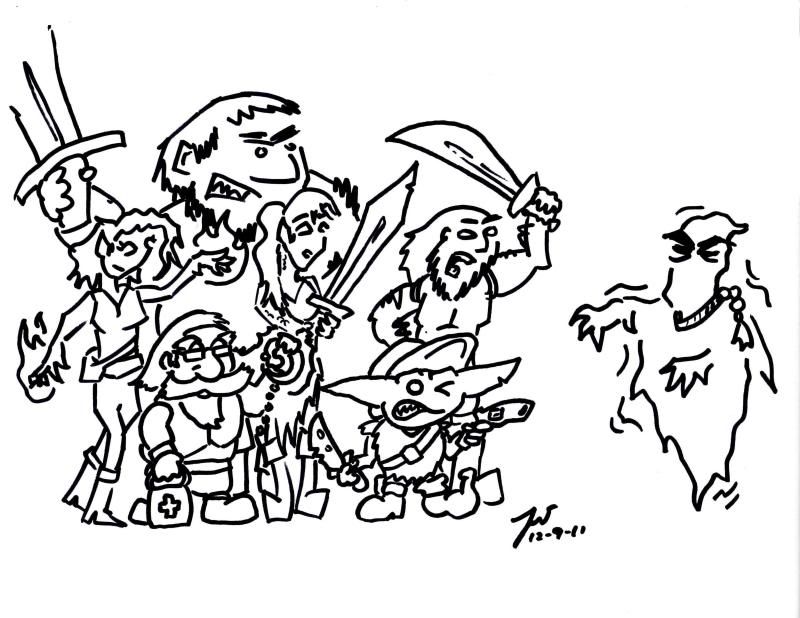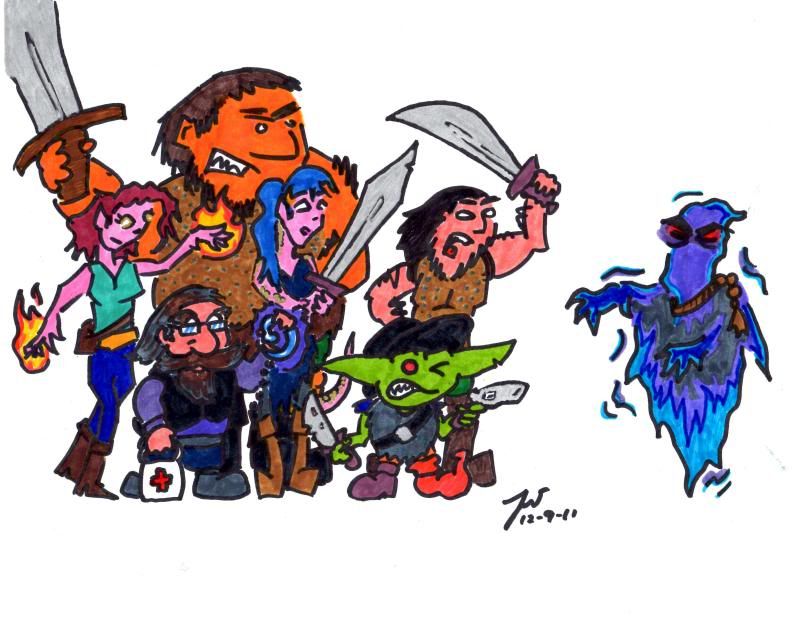 Jezbazeel Ruckskal wrote:Still at work, but here is the B&W version, color will follow later Party 1Mobo Bang-Dead wrote:Yeah I had the idea so I spit that out in about 7 minutes. A bit rushed, but I didn't want to lose the idea.We gonna get a group photo next - mellow ogre, gun crazy goblin, unstable blue haired chick, war crazed Ulfen, oppositionist elf and death loving dwarf