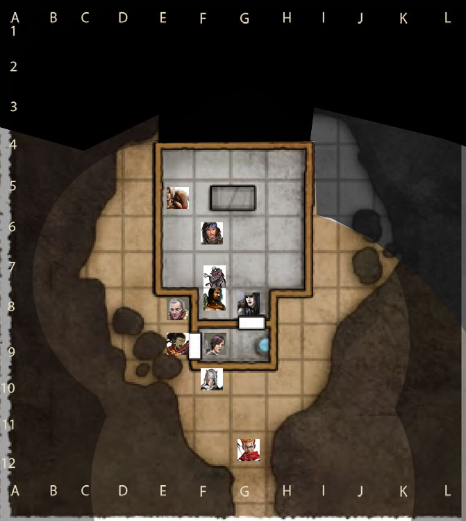The Red Penitent wrote:Map-wise, I think I'm more like in the vicinity of E7ish, correct?You said you were following Trezsia, and she moved forward toward the creature. When you were about 10' away, the maggots emerged. Do you want to be 5' back?