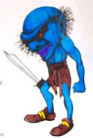 Gregary, who is checking the horses and not around the fire like the rest of the group, is not targeted by any of the xvarts (likely because they didn't notice him) turns to see his allies getting attacked by a number of blue-skinned goblinoids. He narrows his eyes and his hand goes to his sword-hilt.