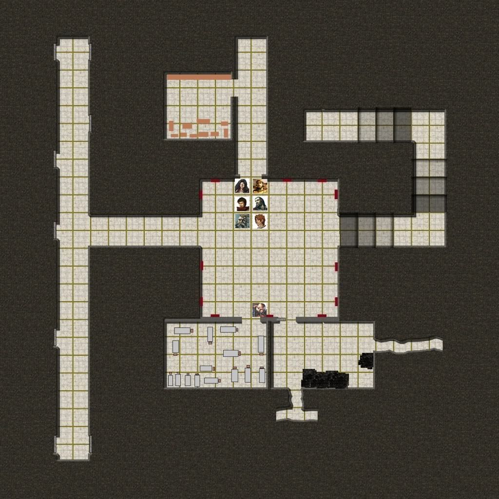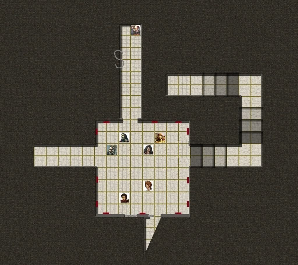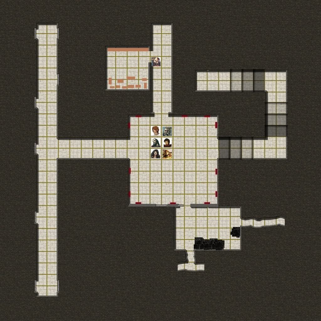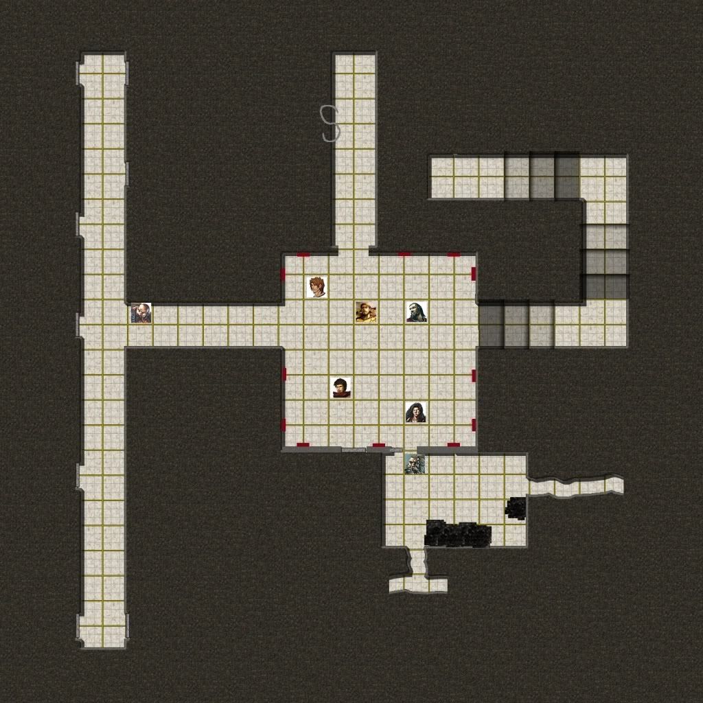 Valamont starts to head toward the secret passage discovered in the northern wall, then stops as it looks like everyone scatters in different directions, then he starts to head toward the western hall that stretches on into darkness, then stops again as the dwarves start crossing back and forth through the room.