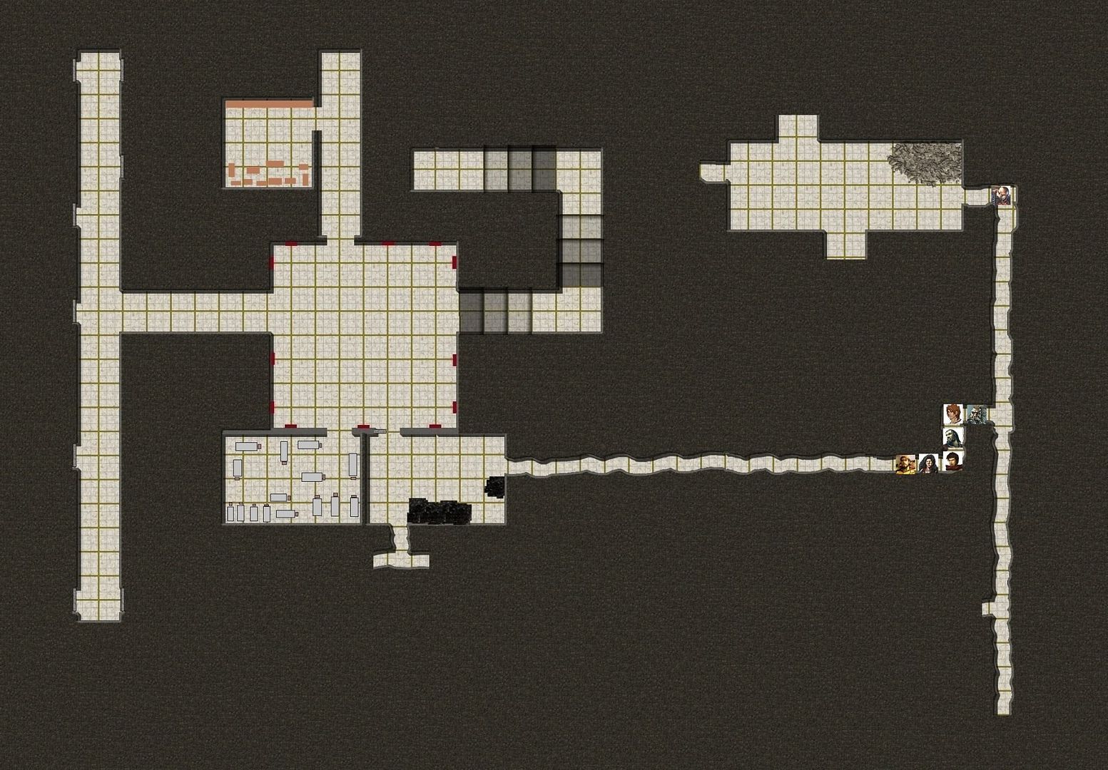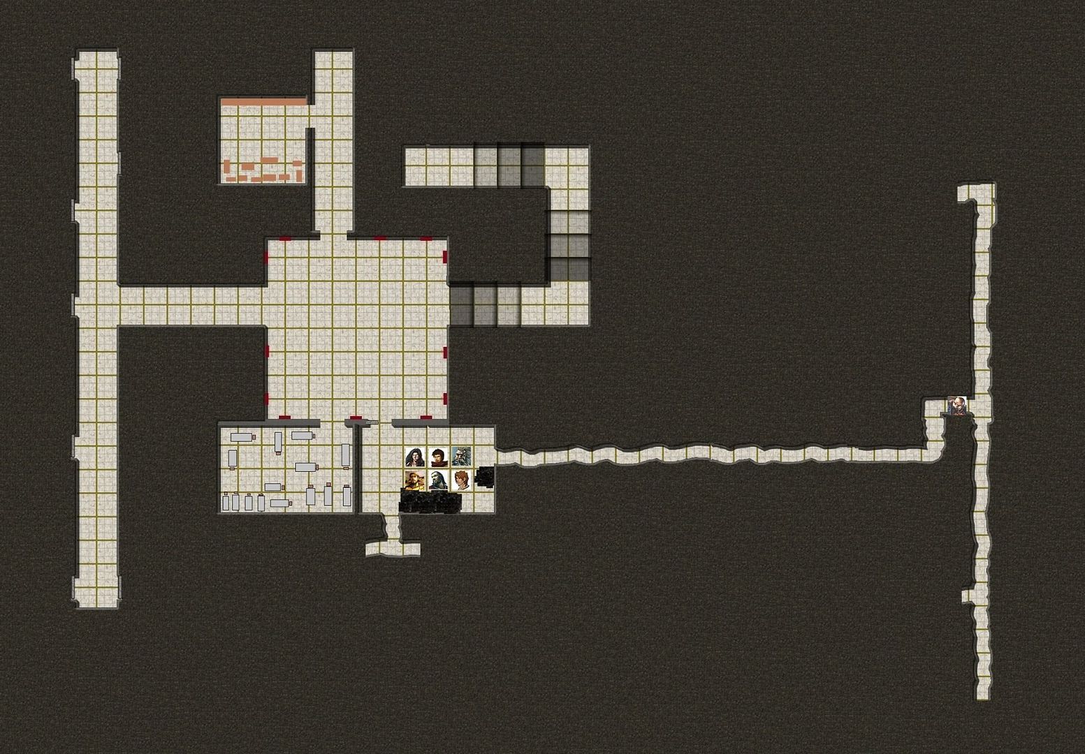 Round 2 – Map – the dotted lines indicate the tunnel goes beneath the newly seen hall that runs north/south.