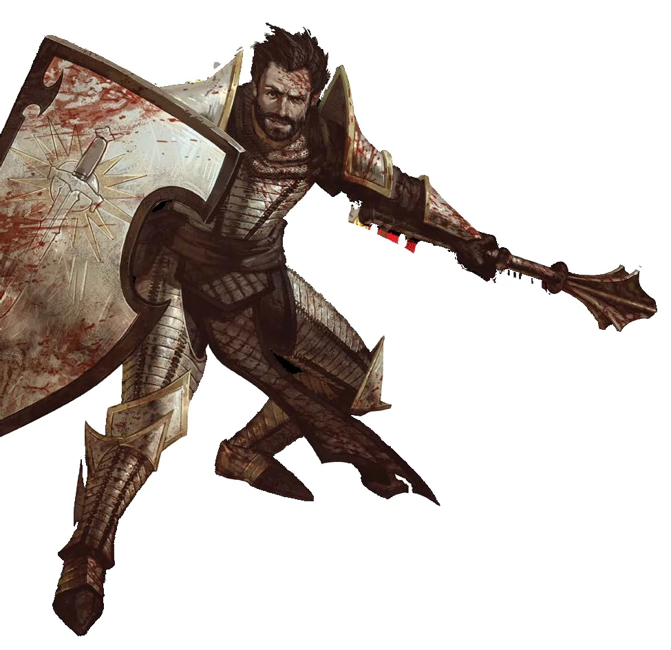 The schir on the ground growls as it hefts itself to its feet. It grins wickedly, turning to one of the helpless crusaders - driving the spear-end of the halberd into his chest.