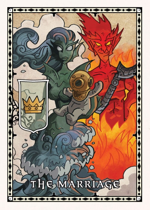 With one more self-conscious look at the others, Mouse speaks up. I say...I'm in. She looks at the cards on the table, admiring the quality of their craftsmanship, then suddenly starts as, in the corner of her eye, the figures of the Marriage seem to shift, their nebulous forms intertwining. Whoa! But if her...spirit's...in there...I guess it's bound ta do some weird things...