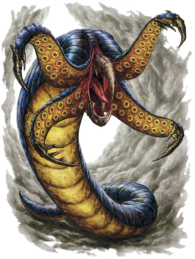 Lyle moves away from the creature and it sends a tentacle his way AoO: 1d20 + 4 ⇒ (1) + 4 = 5. He hurls a dagger that misses wide, nearly skewering Duncan.