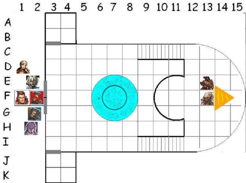 Praxim moves in to H6, knocking an arrow as he weaves his way into the room, then readies an attack for when the sinspawn moves within 30 feet.