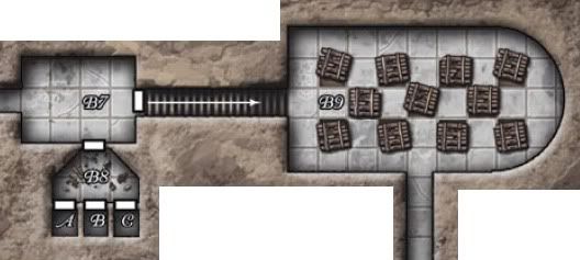 Markum moves to the square in front of the entrance (B9) and waits for the goblin to come to him and Vuvo