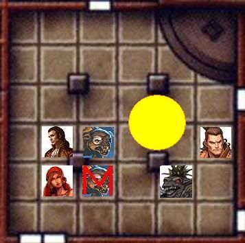 Rhianni summons another thick layer of grease, this time on the floor underneath Ripnugget and Stickfoot. Ripnugget puts his arms out to side, doing his best to keep from falling. He succeeds in keeping his balance and picks up his weapon, keeping a hold on the dogslicer and his feet on the floor, then moves out of the greased area.