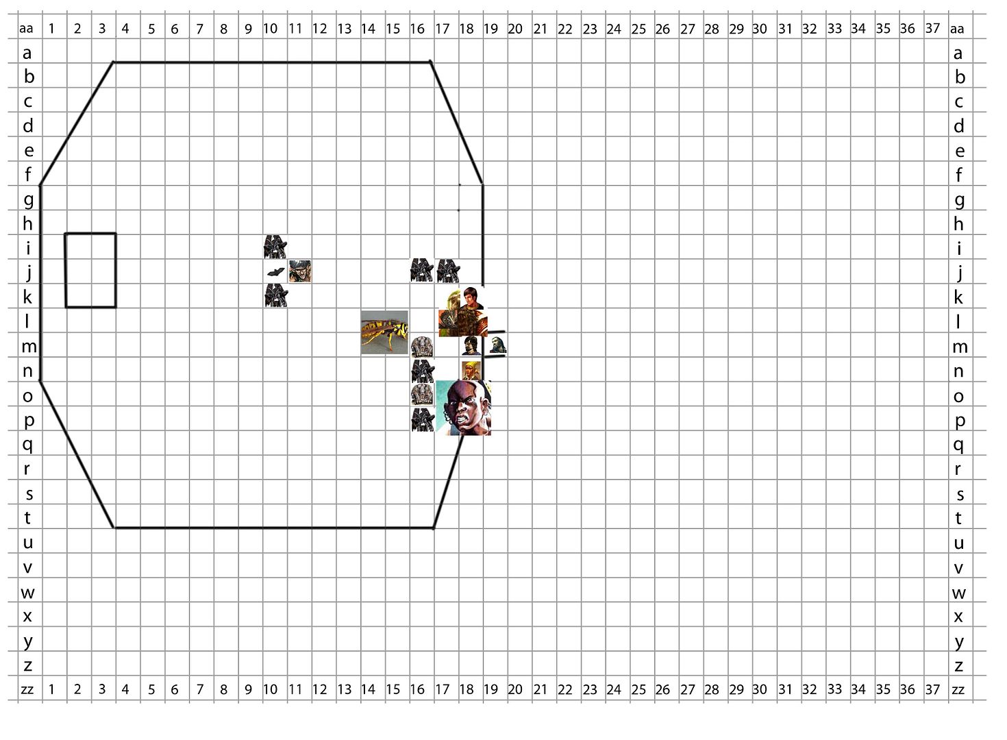 Good map mate. I think Stiggy needs to move down the page a square, so that he's sharing a space with Altai (who is flying above) rather than Beldan.