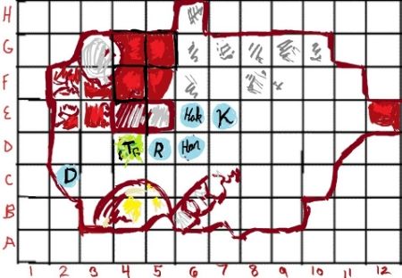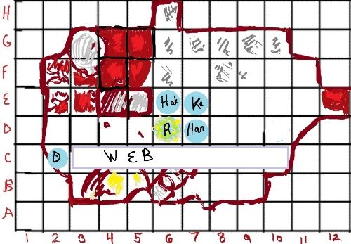 Hanethes moved 5 feet back. Considering that they now have a party member with Constitution damage, he might set up his alchemical kit to start making a repair ointment, but I think we have some restoration spells someplace around here. If nothing else, he will probably do so anyway after the conflict to craft some Vermin Repellant.