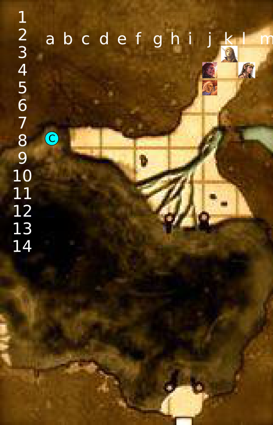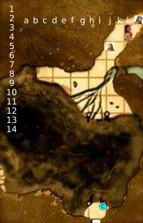 The group regroups around Servayn, waiting for the archons to find their target, but Kriger decides to move forward and tempt the invisible flying zombie. Two archons, from their movement, have sensed evil, though it is too early to tell where it lies. Meanwhile, Servayn tries to catch the zombie with a spell, hoping that the surface will prove great enough to include it.
