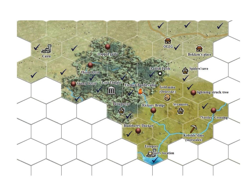 site is back...yayy...will start to work on the map again. so heading west from the staglord fort hex