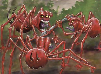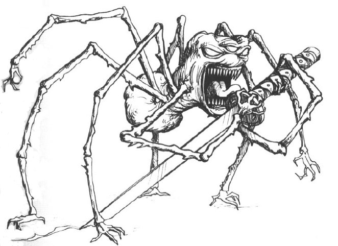 Disgusting podlings are ransacking the house. Three beady, orange eyes burn intensely atop each mouth full of needle-like teeth. They spring around the house from room to room on their spiderlike legs. They do indeed look just like the vile monsters you encountered at the Inn of the Orange Blossom!