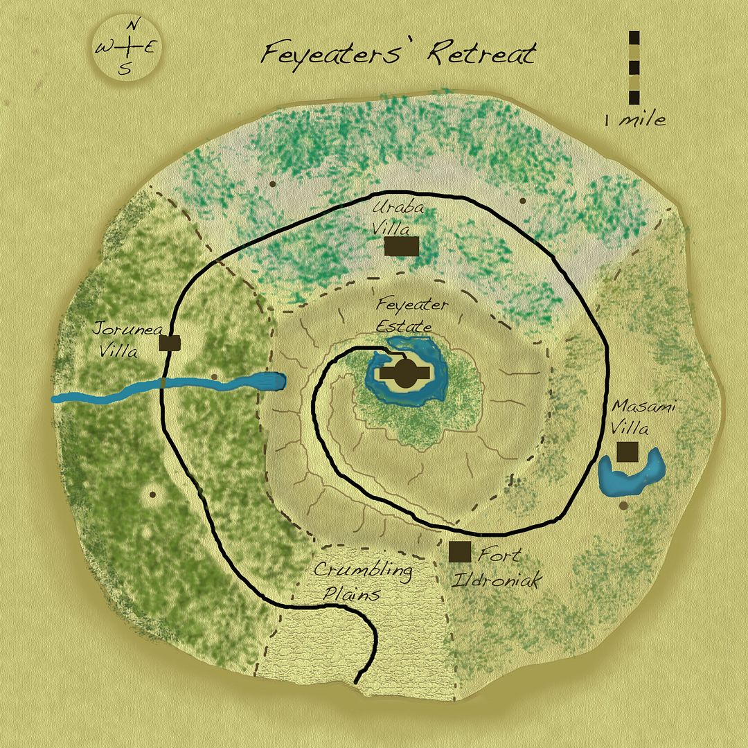 He ponders things for a moment, steeples his fingers and drums them against each other. "It would appear you were summoned to kill the Matron, but... in lieu of such a thing, perhaps it would be in her power to return you to your worlds. From what I understand, you have seen a fraction of her command of nature yourselves - in how she has imbued her guard with the strength of legends. My suggestion would be to somehow gain audience through her kin." He then places a finger on the Jorunea Villa.