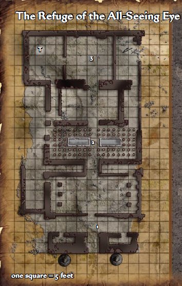 He points back to the group and mouths using the message spell: It is a Temple of the All-Seeing Eye.