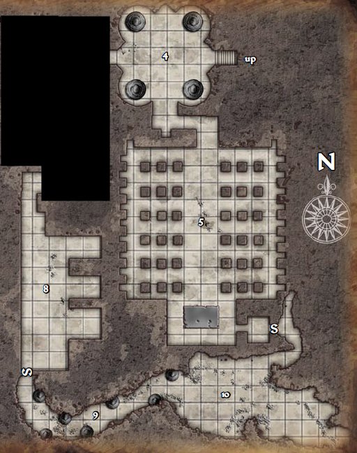 Move Action: Move 20'ft forward - 1 square left of the {8} on the western wall peering into the the second alcove