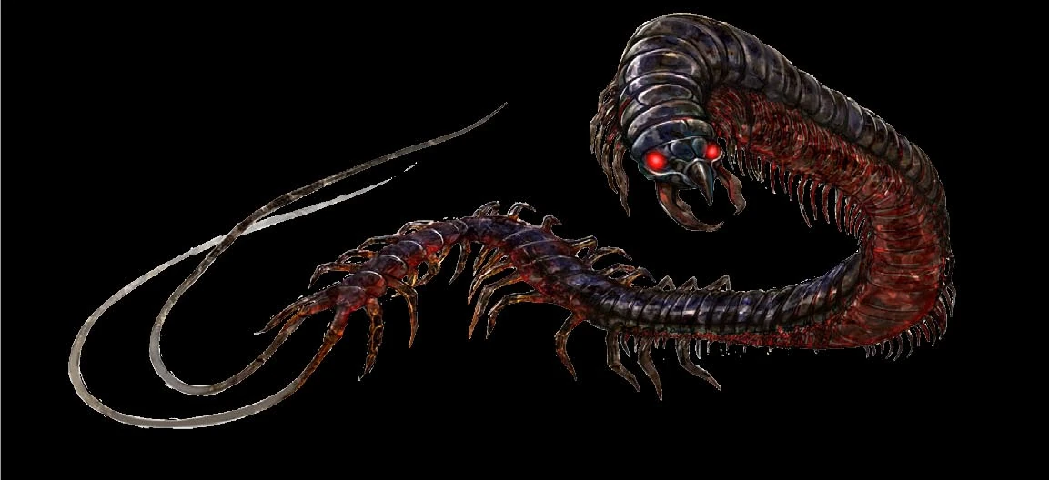 The elephantine centipede slithers out of the ravine with terrifying speed and grace. An uncomplicated combatant, it picks the first intruder it sees and lunges straight for Idris.