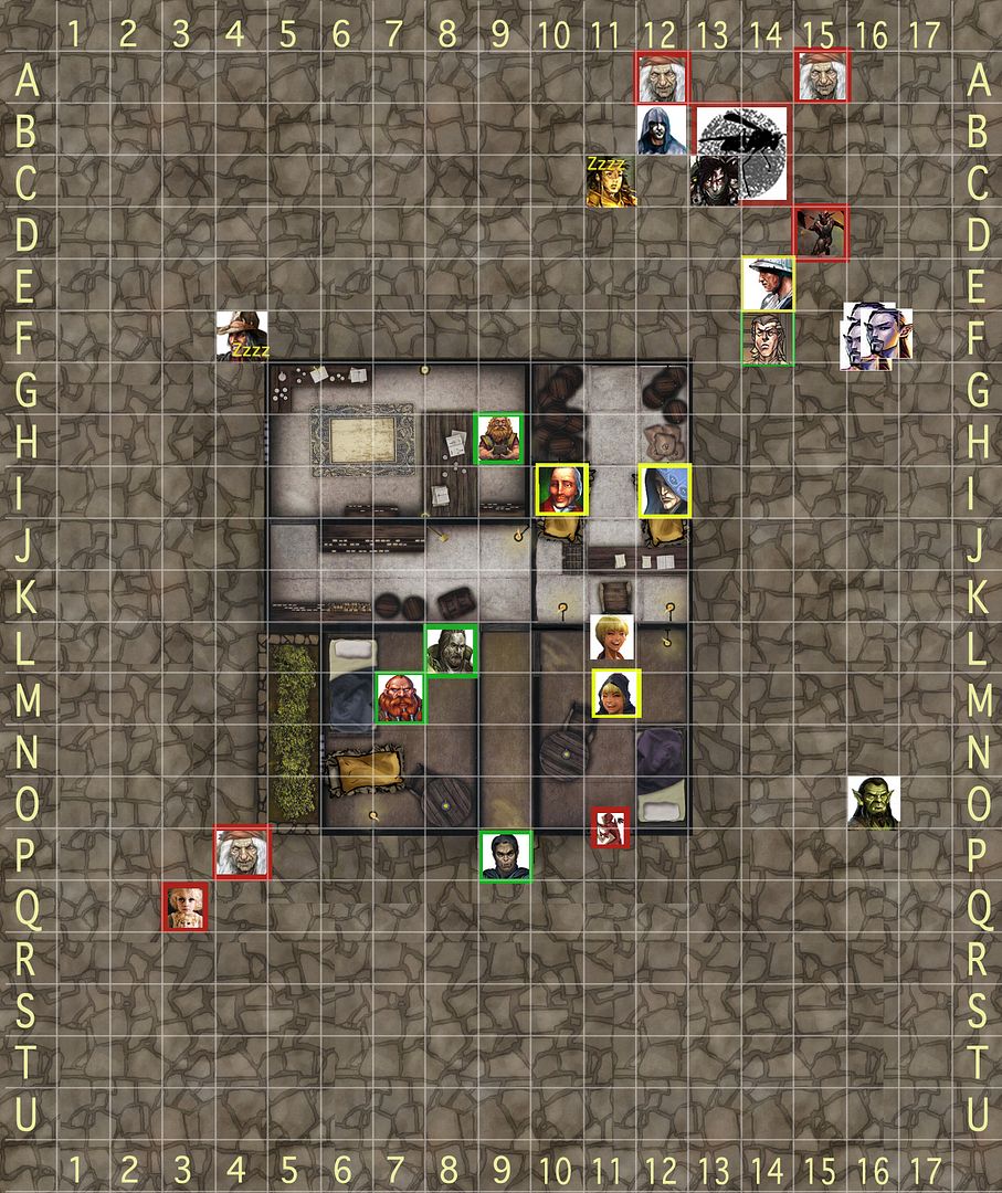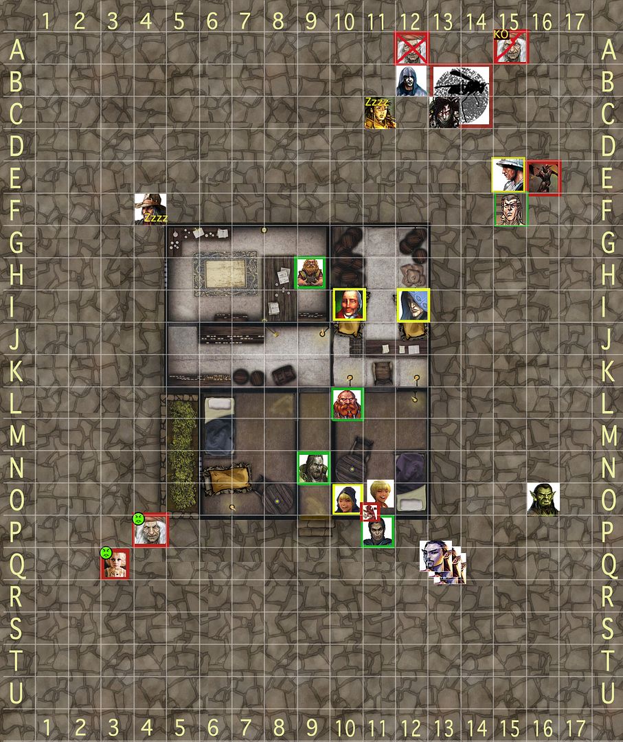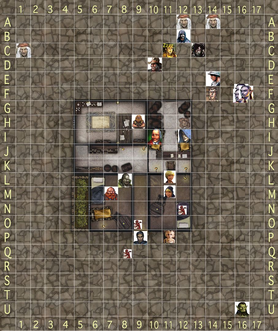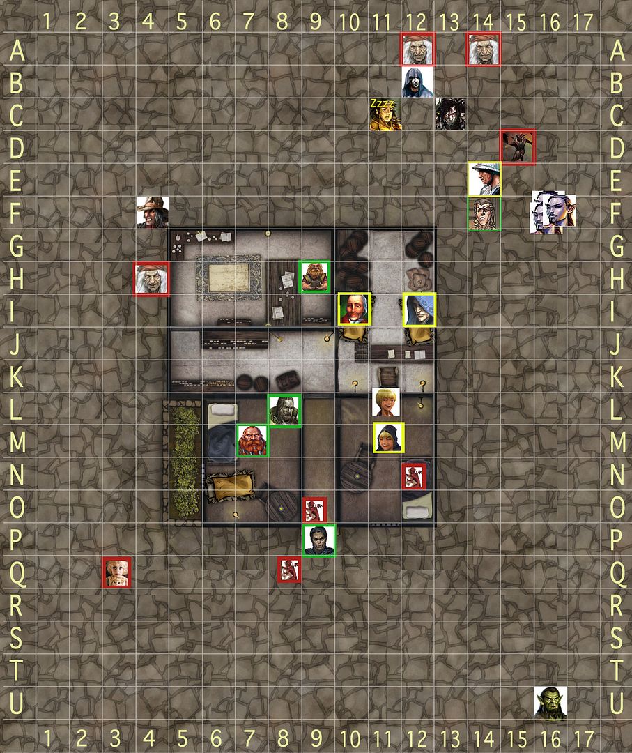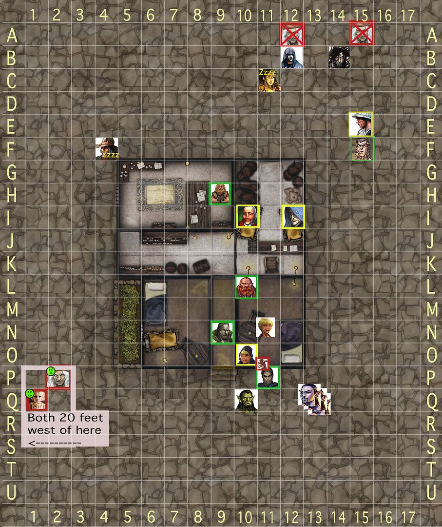 Witch/Tilda - moved 30' west of Q,3/P,4 (one move action/rd from nauseated condition)