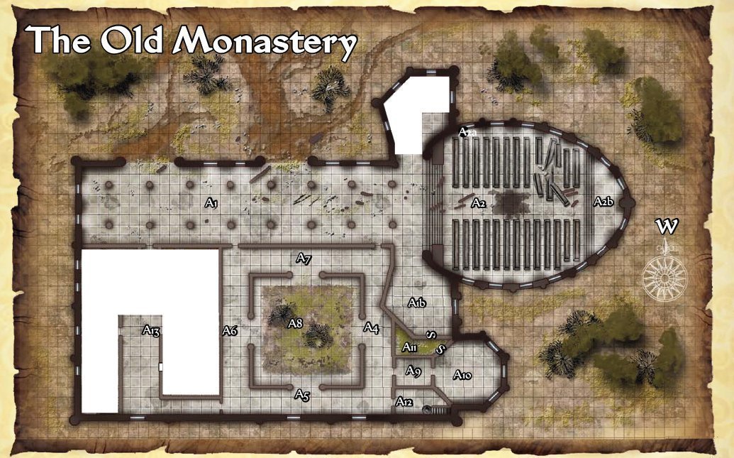 As they exit room A9(?), Talahel carefully looks around to see if anything has crept out during their time under the statue. Perception 1d20 + 8 ⇒ (11) + 8 = 19 If he sees nothing, he will head to the room below A9. Is this the latest map?