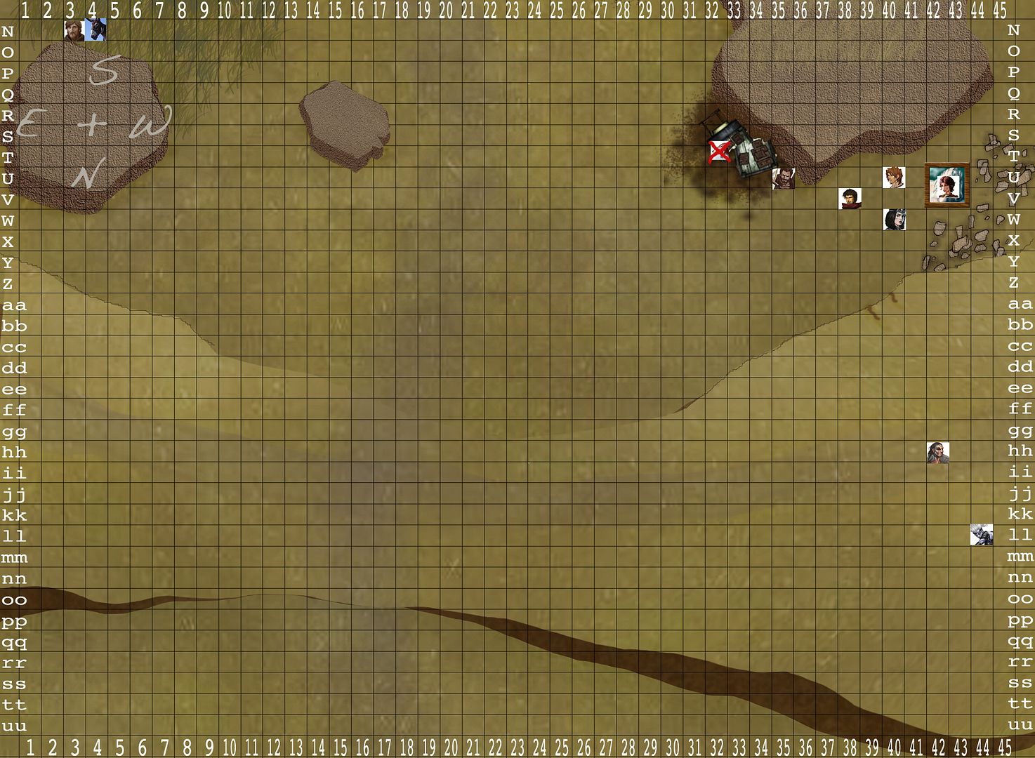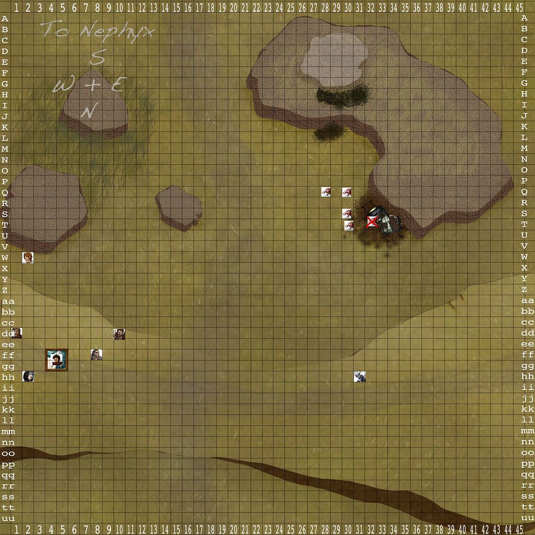 (You may roll stealth if you wish to keep watching - for more details as they get closer) Most of the map area will be hidden from their view until they are right up on you - except west of the wagon rut marks on the supply route trail. (aa-uu,39) to (Y-uu,45) bottom right corner.