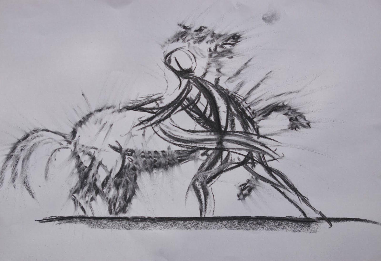 Mors’s appreciation for Janira's travel-friendly story (which is doubly appreciable given the name of the male lead) is cut short by the crash of trees and appearance of ridiculously-sized fleas. The man reacts with a surprising quickness given is bulk. His longsword rasps clear of its backsheath as he yanks a dagger free of its home in a reverse grip, all the while stepping between the noisy northern bug and the group.
