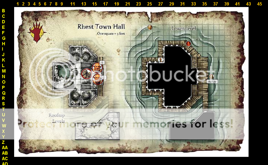 I'd like Maysalkirii on the walkway please. Move me to I27 this turn but i'd like feedback on whether he sees anything before using the rest of his movement. If he doesn't, continue to K24, leaping diagonally off and onto the walkway (I auto-pass the acro check). This still leaves me with a standard action left (and a little movement i think).