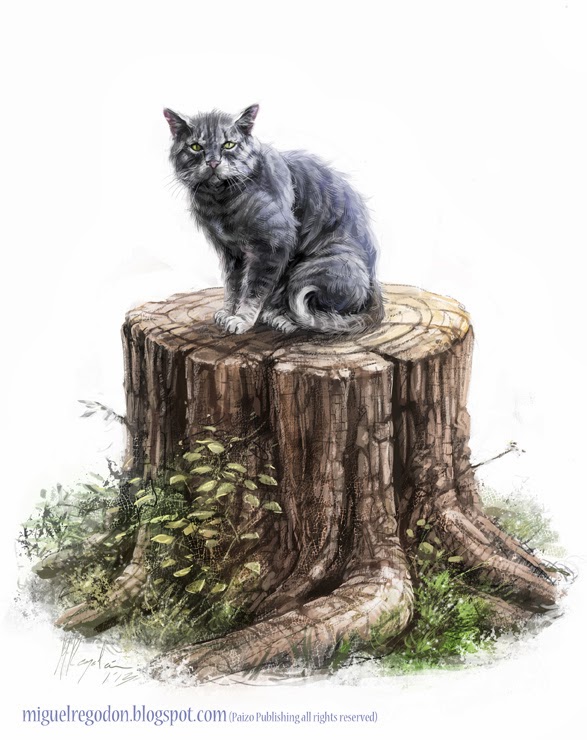There, on the stump, you can see the imprisoned will of the kitty. It lays bound with wooden chains that pulse with some kind of monstrous heartbeat. Percy reaches out and gathers the magic to herself before focusing everything she can muster upon the cat's bonds.