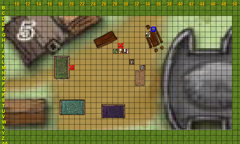 Map looks great! When it's my turn, my aforementioned action (move to N28) stands but I'd like to cast daze on the goblin at I29 since my initial target is not in range.