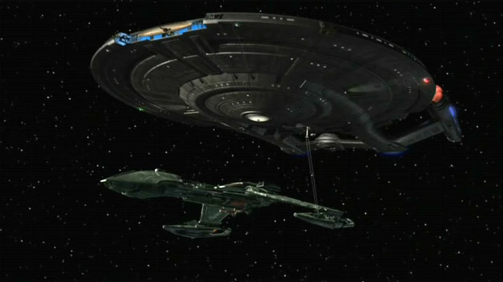 The RAW don't seem to contemplate starship "grappling"--a fairly common scifi tropes--which could been done through the use of tractor beams, grapple cables, or grappler arms). Likewise, they don't seem to support collisions--an even more common scifi trope--that even appeared in a