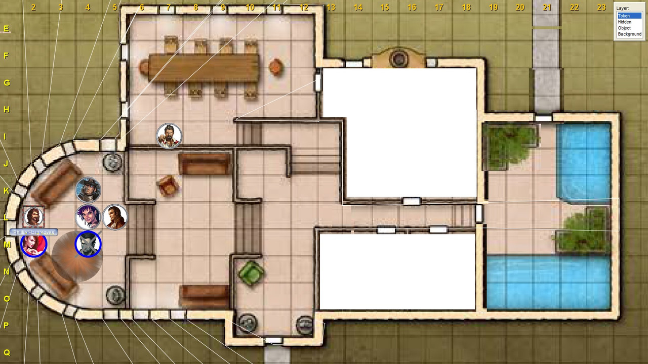 (Move to I7, Ready action to fire on Lil if she does anything but discard the wand. Bolbo has used Bit of Luck on Gristav.)