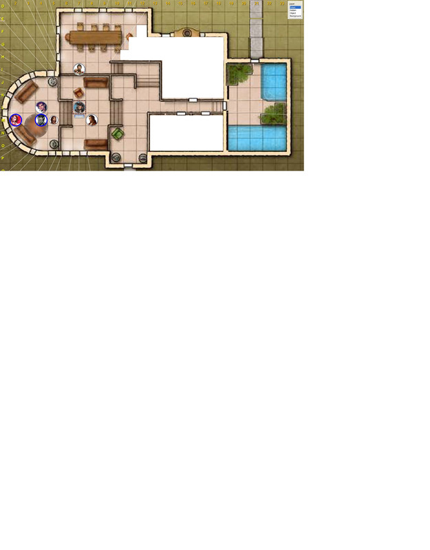"Miss, your defense fades with every strike. Surrender, and you might help us puzzle out your disposition against the conflicting demands your plots have brought upon us. Resist, and...", Gristav shrugs into the ellipsis, and jumps down onto the couch, moving South into the room and up the stairs next to Tendal. As he mounts into view, his staff shimmers in his hand.